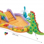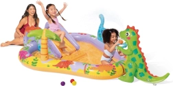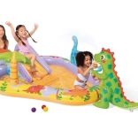 Verwandeln Sie den Garten in ein kleines Wasserparadies. Das aufblasbare Wasserzentrum von INTEX kombiniert ein flaches Planschbecken, eine Rutsche mit gepolsterter Landung und eine Fontäne – einfach den Gartenschlauch anschließen und für Erfrischung ist gesorgt. Das bunte Dinosaurier-Motiv begeistert Kinder und animiert zu aktiver Bewegung.