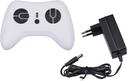 Im Innenraum überzeugen ein bequemer Sitz aus Eco-Leder mit 5-Punkt-Gurt, großzügiger Sitzbereich und praktischer Stauraum unter der Motorhaube. Weiche EVA-Räder dämpfen Unebenheiten und sorgen für leises Fahren auf Gehweg wie Rasen. Für Unterhaltung sorgt ein farbiges Display mit Touch-Panel, vorinstallierte Lieder, USB/SD, Bluetooth und Radio – inklusive Tasten für Titelwechsel und Lautstärke.