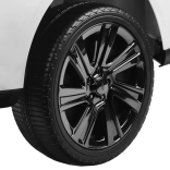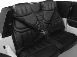 Sitz aus Eco-Leder mit 5-Punkt-Gurt, realistisches Lenkrad und Fahrtrichtungswähler. Weiche EVA-Räder für leises und komfortables Fahren.