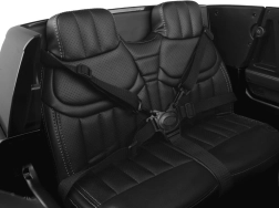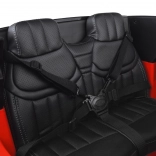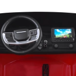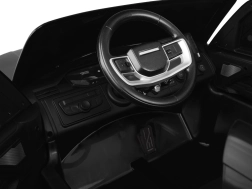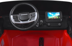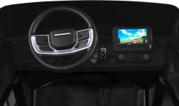 Der Innenraum überzeugt mit einem gepolsterten Sitz aus Ökoleder, 5-Punkt-Gurten und einem übersichtlichen Armaturenbrett mit Wählhebel für Vorwärts-/Rückwärtsfahrt und Schalter für den Antrieb 2x4/4x4. Das farbige Multimedia-Display spielt Lieder und Videos (MP4) von USB oder SD-Karte ab; Bluetooth, Radio und Touch-Steuerung sind ebenfalls vorhanden.