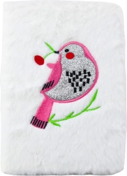 Ein originelles Notizbuch mit einem weichen, flauschigen Einband ist das ideale Accessoire für all jene, die einzigartige und angenehme Accessoires schätzen. Der weiße Einband ist mit einer Stickerei eines anmutigen Vogels in rosa und silbernen Farbtönen verziert, was dem Notizbuch einen einzigartigen Charme und Eleganz verleiht.