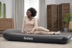 Genießen Sie erholsamen Schlaf, wo immer Sie sind. Das aufblasbare Bett BESTWAY Tritech kombiniert die stabile I‑Beam-Innenkonstruktion mit dem robusten Tritech-Material, das auch bei langfristiger Nutzung formstabil bleibt. Die angenehme Veloursoberfläche verhindert das Rutschen der Bettwäsche und sorgt die ganze Nacht für Komfort.
