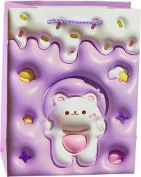 Diese Geschenktasche aus Zierkarton begeistert mit einer Pastellpalette in Rosa, Blau, Orange und Lila. Der niedliche Bär mit Sternchen und Fruchtdetails erzeugt einen 3D-Effekt, als würde er aus der Tasche hervortreten. Abgerundet wird der stilvolle Look durch farblich abgestimmte Kordelgriffe für bequemes und sicheres Tragen.