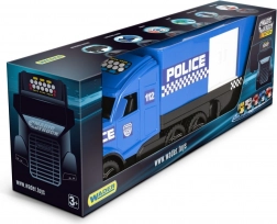 Diese detailreich gestaltete Polizeizugmaschine mit Auflieger ist wie gemacht für spannende Einsätze und den Transport von „Ladung“. Kinder schätzen die realistischen Elemente, die Möglichkeit, mit dem Container zu manövrieren, sowie das Öffnen der Türen und der Heckklappe für ein einfaches Beladen.