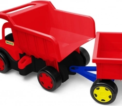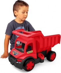 Entdecken Sie den robusten roten Kipper GIGANT, der dank seiner Länge von 55 cm und der stabilen Konstruktion viel „Ladung“ und fantasievolle Spiele meistert. Die öffnende Mulde mit bequemem Griff erleichtert das Beladen und Auskippen, während die Ösen vorne und hinten das Ziehen sowie das Ankuppeln eines weiteren Fahrzeugs oder Anhängers ermöglichen.
