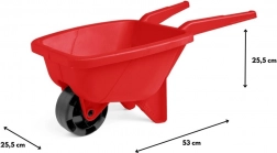 Dank der kompakten Abmessungen (Länge 53 cm) ist die Schubkarre leicht, gut zu handhaben und auch für jüngere Kinder geeignet. Ergonomisch geformte Griffe erleichtern das Manövrieren und helfen, die Stabilität zu halten. Hochwertiger, langlebiger und sicherer Kunststoff widersteht Stößen und Wetterwechseln.