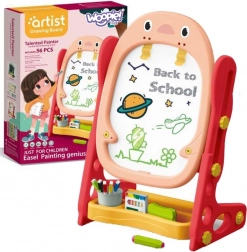 Entdecken Sie die vielseitige Kindertafel WOOPIE zum Zeichnen, Schreiben und für die ersten Schritte im Lernen. Sie bietet eine beidseitige Schreibfläche (Kreide/Whiteboard-Marker), magnetische Elemente, umfangreiches Zubehör mit 56 Teilen und eine höhenverstellbare Konstruktion für komfortable, langfristige Nutzung.