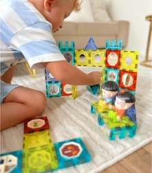 Starke Magnete ermöglichen es Kindern, schnell zu bauen und umzubauen. Die Konstruktionen behalten ihre Form und motivieren zu weiteren Experimenten mit Formen und Farben.