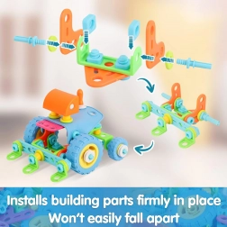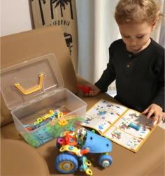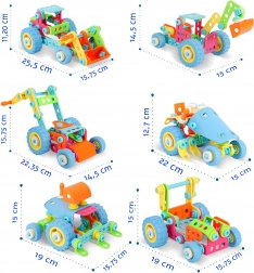 Der WOOPIE 6-in-1 STEM Baukasten ist die ideale Wahl für kleine Konstrukteure ab 5 Jahren. Flexible Teile, Räder und bewegliche Komponenten ermöglichen Kindern den Aufbau verschiedener funktionaler Fahrzeugmodelle – vom Lader bis zum Traktor mit Pflug. Der praktische Schraubendreher und Schlüssel im Set fördern manuelle Geschicklichkeit und Koordination.