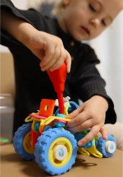 Kinder bauen und zerlegen die Modelle selbst mithilfe des beiliegenden Schraubendrehers und Schlüssels – sicher, einfach und spielerisch.