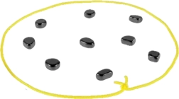 - Inhalt: 20 magnetische Steinchen in verschiedenen Formen, gelbe Abgrenzungsschnur, Stoffbeutel, Anleitung