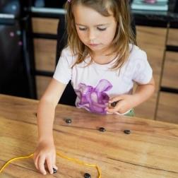 Die flexible Schnur schafft im Handumdrehen ein „Spielfeld“ überall. So bleibt das Spiel am Tisch und unterwegs übersichtlich.