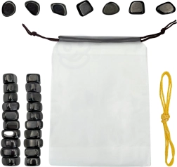 - 20 magnetische Steinchen in verschiedenen Formen, gelbe Schnur, Stoffbeutel, Anleitung