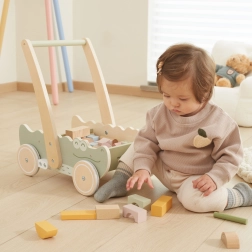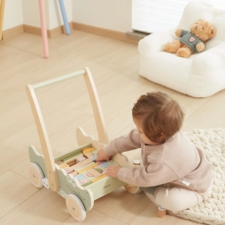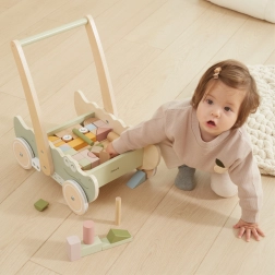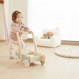 Lernen Sie mit Vertrauen zu gehen und haben Sie Spaß dabei. Der Lauflernwagen funktioniert auch als fahrbarer Stauraum für Spielzeug.