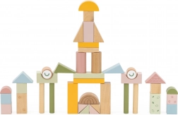 Verschiedene Formen und pastellfarbene Steine fördern die Kreativität und das Lernen von Farben und Formen.