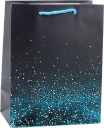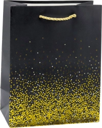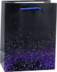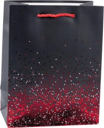 Verfügbar in vier Farbvarianten: Gelb, Lila, Rot und Türkis. Jede Farbe wird durch einen schwarzen Hintergrund ergänzt, der die Eleganz und den Kontrast zum glitzernden Effekt betont. Stabile Kordelgriffe in zur Farbpalette abgestimmten Tönen sorgen für komfortables Tragen und die robuste Konstruktion garantiert sichere Aufbewahrung auch schwererer Geschenke.