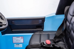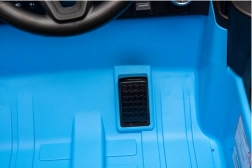 Front-LED-Lichter und ein Multimedia-Panel mit MP3, Bluetooth und USB. Lenkrad mit Hupe und Sounds für noch mehr Realismus.