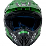Dieser grüne Motocross- und Enduro-Helm kombiniert geringes Gewicht mit hoher Sicherheit dank der robusten ABS-Außenschale. Das innovative Belüftungssystem hält den Kopf selbst bei anspruchsvollen Offroad-Fahrten trocken und komfortabel, während der verstellbare Schirm vor Sonne und aufwirbelnden Partikeln schützt.