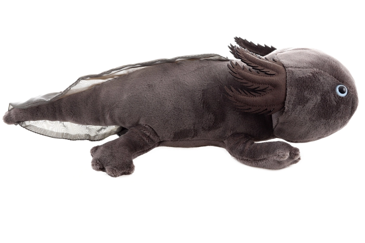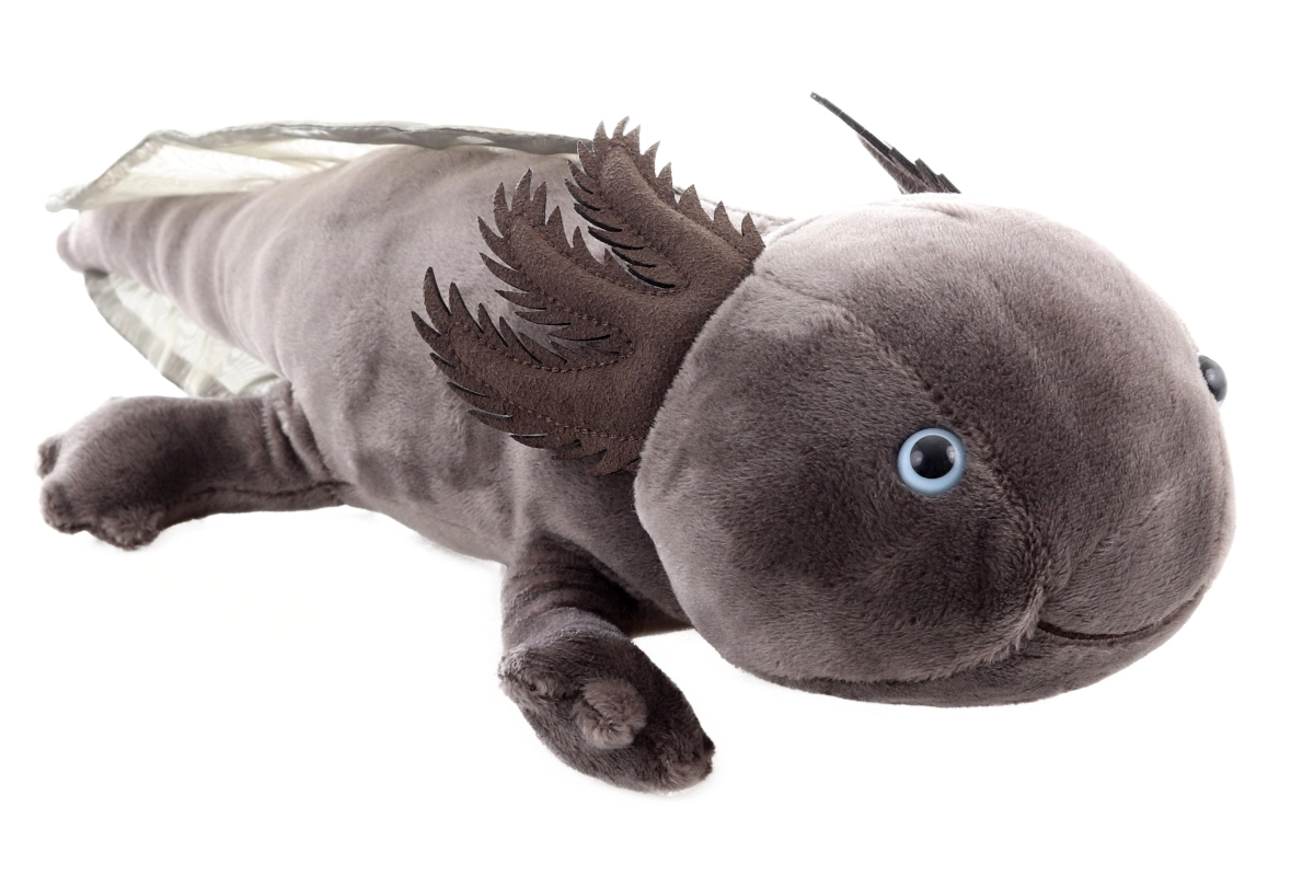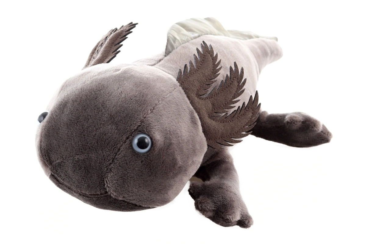 Gestickte Augen, fransige Kiemen und ein langer Schwanz verleihen dem Axolotl einen authentischen und freundlichen Look, den Kinder lieben werden.