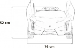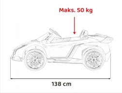 Für Unterhaltung ist gesorgt: Bluetooth, MP3, USB, FM-Radio, Sounds und Hupe am Lenkrad. Der Innenraum mit zweisitzigem Eco-Ledersitz bietet Platz für Geschwister oder Freunde, Sicherheitsgurte sorgen für Schutz. LED-Lichter, aufklappbare Scissor-Türen und realistische Karosseriedetails schaffen ein authentisches Erlebnis.