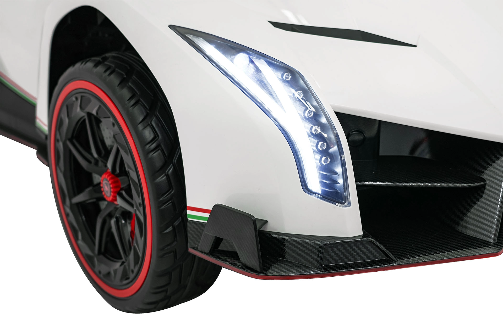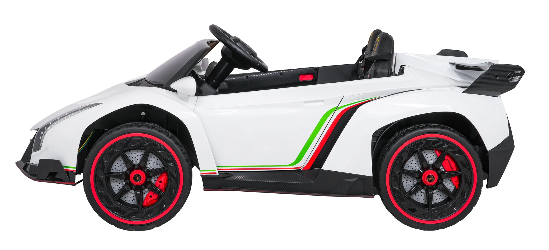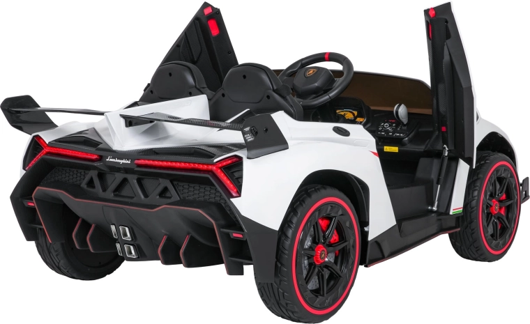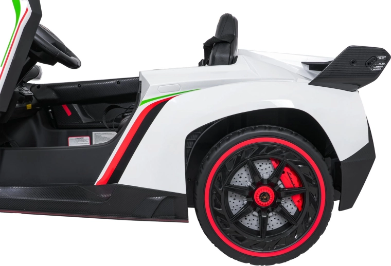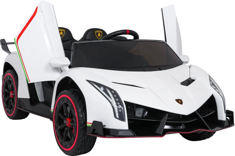 Erfüllen Sie den Kindertraum vom Fahren in einem Supersportwagen. Das elektrische Auto LAMBORGHINI Veneno in sattem Rot vereint Spitzenleistung und Sicherheit: vier 4×45-W-Motoren, doppelte Batterie 12 V 7 Ah ×2, sanftes Anfahren und zwei Geschwindigkeiten vorwärts/rückwärts. Robuste EVA-Räder, hintere Federung und 10 cm Bodenfreiheit sorgen für komfortables Fahren auch auf unebenem Untergrund.