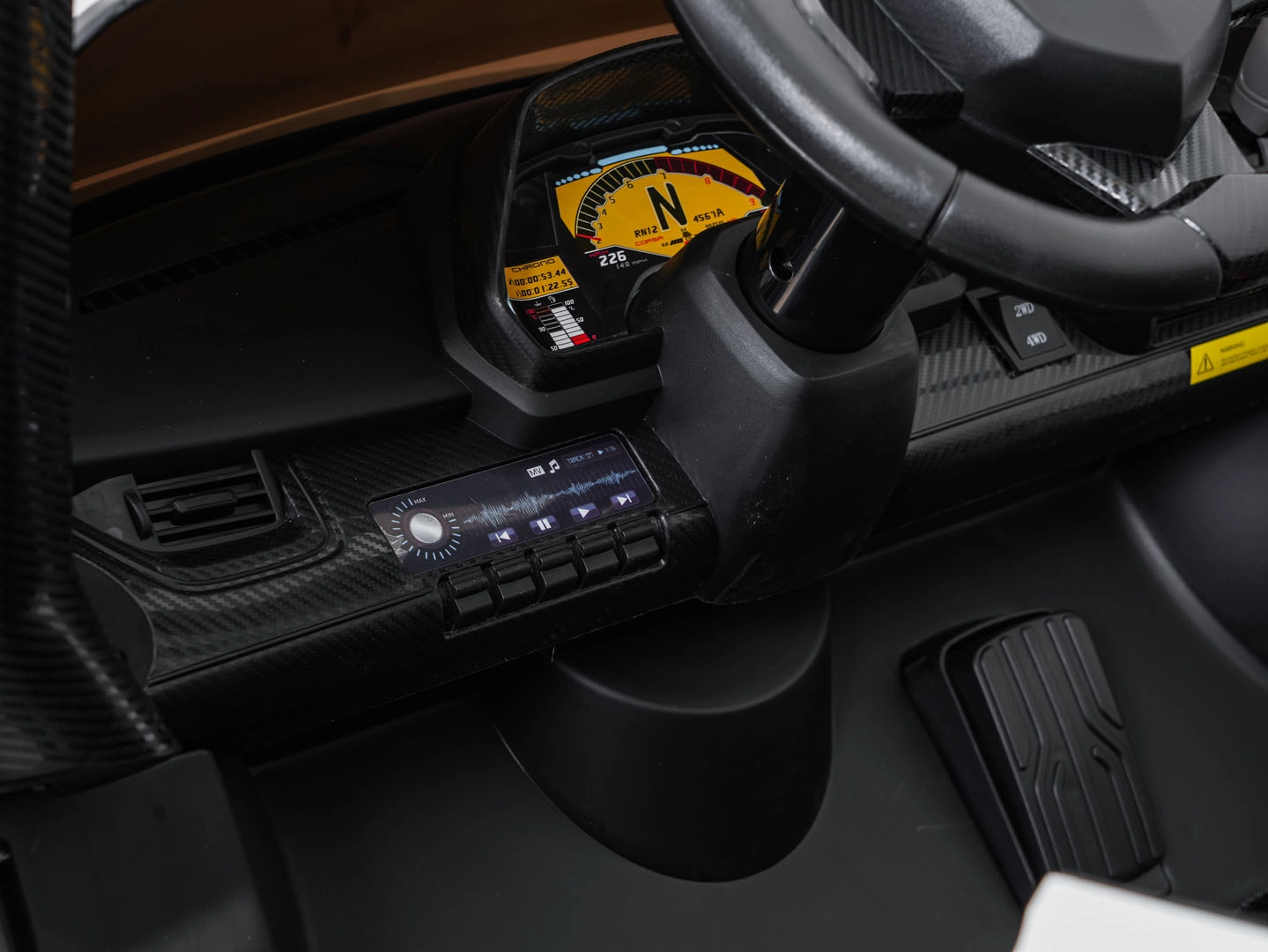 Das integrierte Audiopanel liefert Lieblingsmelodien und die Verbindung eigener Musik via Bluetooth/MP3/USB sowie zusätzlich UKW-Radio. Das Fahrzeug trägt bis zu 50 kg und ist somit eine ausgezeichnete Wahl für Geschwister und längere Abenteuerfahrten.