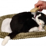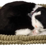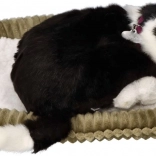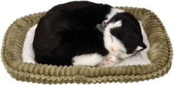 Dieses realistische Plüschkätzchen in Schwarz-Weiß schläft friedlich in seinem Körbchen und „atmet“ sanft, wodurch eine gemütliche Atmosphäre und das Gefühl der Anwesenheit eines echten Haustiers entstehen. Dank der detailreichen Verarbeitung, dem Halsband mit Anhänger und dem weichen Fell ist es ein tolles Geschenk für Kinder ab 3 Jahren und Katzenliebhaber.