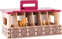 Der Stall besteht aus hochwertigem Holz und ist so konzipiert, dass er dem täglichen Spielen standhält. Sechs separate Boxen ermöglichen eine übersichtliche Aufbewahrung von Pferdefiguren und Zubehör. Ideal als Geschenk für kleine Tier- und Pferdeliebhaber.