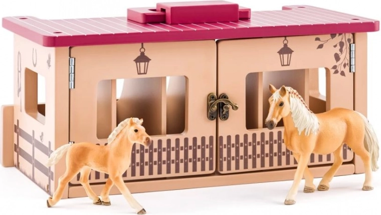Funktionierende Türen und die Aufteilung in 6 Boxen unterstützen realitätsnahes Spielen und die Pflege der Pferdchen.