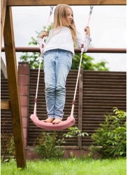 Stilvolle und sichere Schaukel für Kinder, ideal für Garten oder Zuhause. Sie ist so konzipiert, dass sie dank des profilierten Sitzes und der robusten Seile Stabilität und Komfort bietet.