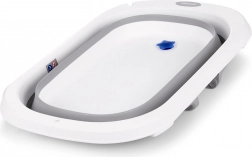 Praktische, faltbare Babybadewanne mit weicher Badeauflage für sicheres und bequemes Baden zu Hause und unterwegs. Bietet rutschfeste Füße, kompaktes Falten, Ablauf mit Stöpsel und Öffnung zum Anschluss eines Duschschlauchs für maximalen Komfort bei der Nutzung.