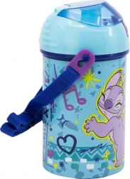 Kinderflasche mit Tragegurt mit einem Volumen von 450 ml und dem Motiv Stitch bietet sicheres und unterhaltsames Trinken für Kinder.