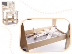 Großartiges Holzspielzeug Werkzeugsatz für kleine Kinder, die Erwachsene nachahmen und die Welt um sich herum entdecken möchten. Dank der umfangreichen Ausstattung können sich die Kinder wie echte Meister ihres Fachs fühlen.