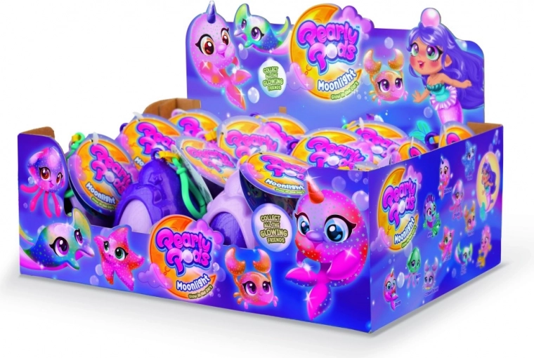 Die leuchtenden Freunde Pearly Pods Moonlight sind superweiche Plüschfiguren in lieblichen Farben, die in einem effektvollen, glänzenden Etui verborgen sind. Einfach aufladen und im Dunkeln spenden sie ein sanftes Licht, das Kindern ein Gefühl von Sicherheit gibt und das Zimmer in einen magischen Ort verwandelt.