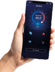 Mit der mobilen App können Sie die Wassertemperatur bequem einstellen, die Intensität der Blasen steuern, die Wasserqualität überwachen und die LED-Beleuchtung verwalten.