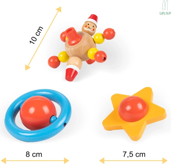 - Manuelle Fähigkeiten und Motorik: Das Aufheben und Platzieren der Kugeln und anderer Accessoires entwickelt die Fingerfertigkeit und die motorischen Fähigkeiten der Kinder.