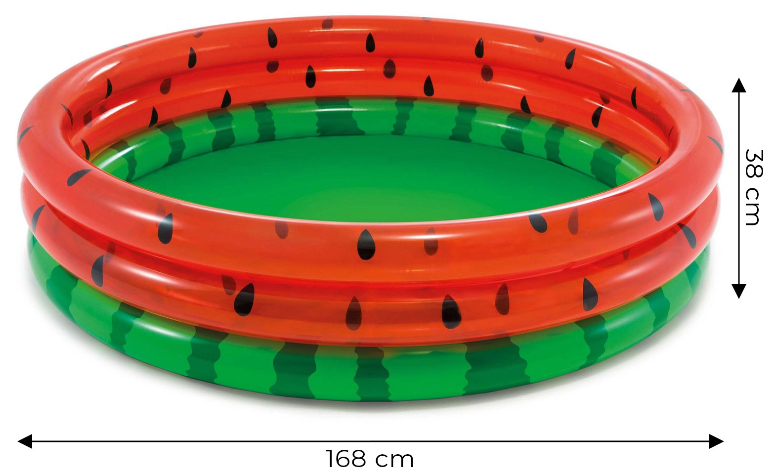 Sommerlicher Gartenspaß für die Kleinsten! Das runde aufblasbare Planschbecken im Melonen-Design von INTEX bietet viel Platz zum Spielen (168 × 38 cm), robuste PVC-Wände mit 3 Ringen und ein Fassungsvermögen von 581 l. Ideal für Kinder ab 2 Jahren mit einfacher Montage und auffälligem Design für endlose Wasserspiele.