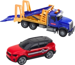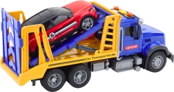 Zum Set gehören zwei Sportautos, die einfach auf den Anhänger geladen und entladen werden können. Der Transporter hat bewegliche Teile, die die Funktionen eines echten Transportmittels realistisch nachbilden.