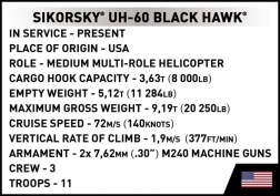 Das Modell des Hubschraubers Sikorsky UH-60 Black Hawk ist auf Basis der Originallizenz der Sikorsky Aircraft Corporation entworfen. Dieser berühmte Militärhubschrauber ist bekannt für seine Zuverlässigkeit, Mobilität und Fähigkeit, unter extremen Bedingungen zu operieren.