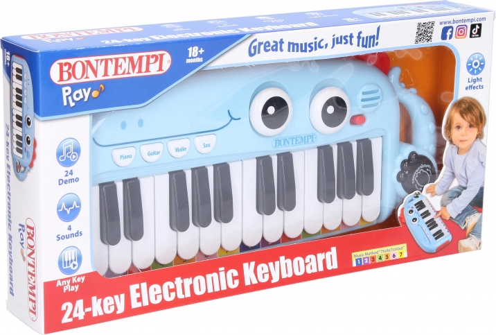 Bontempi elektronisches Klavier blau mit 24 Tasten, 24 Demosongs und Lichteffekten. Ein großartiges Musikinstrument für Kinder.