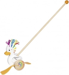 Die Regenbogen-Ente Lou ist ein klassisches Schiebe-/Lauflernspielzeug, das Kinder zur Bewegung motiviert. Dank ihrer leuchtenden Farben und dem sanften Lauf bereitet sie Freude am Gehen und stärkt gleichzeitig die Trittsicherheit sowie die Hand-Fuß-Koordination.