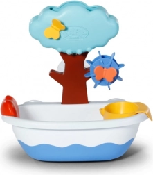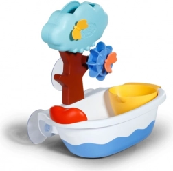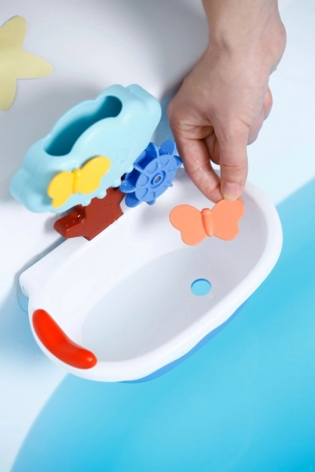 Dieses verspielte Bade-Set verwandelt jedes Waschen in ein unterhaltsames Wasserabenteuer. Kinder können Wasser in den Becher schöpfen, in die Baum-Dusche gießen und beobachten, wie sich das Wasserrad in Bewegung setzt. Dank der Saugnäpfe hält die Basis stabil auf der glatten Oberfläche der Badewanne oder Fliesen.