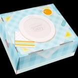 Ein realistisches Butterstück auf einem Teller mit Deckel und Kindermesser hilft, die Feinmotorik zu trainieren und das Zubereiten von Speisen nachzuahmen.