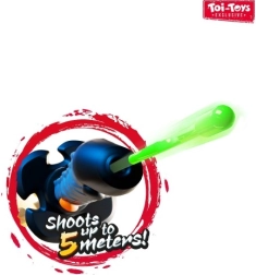 Die Pfeile werden im Griff des Schwerts verstaut und lassen sich per Knopfdruck abschießen – für ein sicheres, aber spannendes Spiel mit einer Reichweite von bis zu 5 Metern.