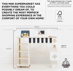 Schaffen Sie Kindern ihren eigenen Laden mit dem wunderschönen Holzstand von LE TOY VAN. Dieses Set bietet eine Kasse, ein Förderband, einen Scanner und umfangreiches Lebensmittel-Zubehör für realitätsnahes Kaufladen-Spiel. Hergestellt aus FSC-Holz und natürlicher Baumwolle, 100 % plastikfrei, sicher und langlebig für den täglichen Spielgebrauch.