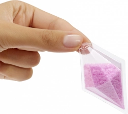 Streuen Sie den farbigen „Feenstaub“, geben Sie mit der Pipette Wasser hinzu und kreieren Sie ein originelles, glänzendes Muster, das nach dem Trocknen an der Puppe befestigt wird.
