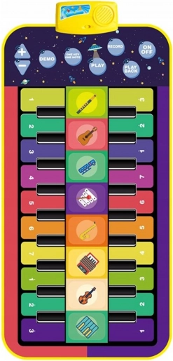 Die interaktive Musikmatte – Klavier von WOOPIE bringt Spaß für die ganze Familie. Kinder können tanzen, spielen und singen und dabei Koordination sowie musikalisches Empfinden fördern. Die Matte ist weich, hat eine rutschfeste Unterseite, verfügt über 10 Klaviertasten und Symbole von 8 Instrumenten, mehrere Abspielmodi, Aufnahme und Wiedergabe und schaltet nach 3 Minuten Inaktivität in den Energiesparmodus.