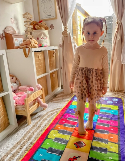 Bringen Sie mit Rhythmus und Melodien Leben ins Kinderzimmer. Die WOOPIE Musikmatte verbindet Bewegung mit Lernen – Kinder trainieren spielerisch Rhythmus, Motorik und Gehör. Dank mehrerer Modi und 10 integrierten Songs wird der Spaß nie langweilig, egal ob frei gespielt wird oder eigene Melodien entstehen.