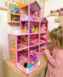 Entdecken Sie eine Welt voller Fantasie mit dem WOOPIE-Puppenhaus Lovely House. Diese geräumige, mehrstöckige Villa bietet verschiedene Räume, Balkone und Dächer, die zu realistischen Szenen des Familienlebens einladen. Kinder genießen sowohl das Bauen als auch das anschließende Einrichten des Innenraums mit detaillierten Möbeln und Accessoires.