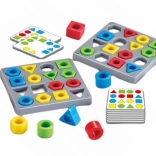 Spielprinzip: Die Spieler müssen ein Muster auf der Unterlage gemäß einer gezogenen Karte nachbilden. Dabei müssen sowohl die Anordnung als auch die Farben der geometrischen Formen beachtet werden.